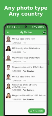 7ID অ্যাপ্লিকেশনটি আপনার পাসপোর্ট এবং ভিসা ছবির সমস্ত চাহিদা মেটাতে একটি সম্পূর্ণ আধুনিক সমাধান। মাত্র কয়েক সেকেন্ডের মধ্যে, আপনি বিশ্বজুড়ে ১৭০ টিরও বেশি দেশের জন্য নির্ভুল মাপের ছবি তৈরি করতে পারবেন, যা সরকারি মানদণ্ড মেনে চলে। Visafoto.com-এর দীর্ঘদিনের অভিজ্ঞতা এবং তাদের ৫০০,০০০-এরও বেশি অনুমোদিত ছবির সাফল্যের ইতিহাস এই অ্যাপ্লিকেশনটিকে করে তুলেছে অত্যন্ত নির্ভরযোগ্য। যদি আপনার কোনো ছবি প্রত্যাখ্যাত হয়, 7ID আপনাকে বিনামূল্যে পুনরায় ছবি তৈরির নিশ্চয়তা প্রদান করে (সাবস্ক্রিপশন প্ল্যানের জন্য)। ডিজিটাল ফর্ম্যাটে ছবি সরবরাহ করা হয়, যা আপনার অনলাইন অ্যাপ্লিকেশন বা প্রিন্টের জন্য প্রস্তুত।