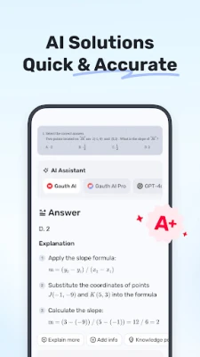 শিক্ষা জীবনের প্রতিটি চ্যালেঞ্জ মোকাবেলায় Gauth আপনার অপরিহার্য সঙ্গী। যখনই কোনো জটিল প্রশ্নে আটকা পড়েন, Gauth AI Pro-এর অতুলনীয় ক্ষমতা ব্যবহার করে সেকেন্ডের মধ্যে নির্ভুল ও সুনির্দিষ্ট সমাধান পেয়ে যান। অন্যান্য হোমওয়ার্ক হেল্পারদের চেয়ে দ্রুততার সাথে Gauth কেবল উত্তরই দেয় না, প্রতিটি ধাপকে অ্যানিমেটেড নির্দেশিকা ও বিস্তারিত ব্যাখ্যার মাধ্যমে এমনভাবে উপস্থাপন করে যাতে আপনি মূল ধারণাটি সহজেই আয়ত্ত করতে পারেন। এটি কেবল একটি সমাধান অ্যাপ নয়, বরং আপনার জ্ঞান অন্বেষণের এক নির্ভরযোগ্য মাধ্যম।