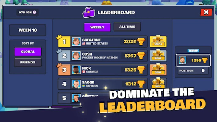 একাধিক রোমাঞ্চকর এরেনা এবং বিভিন্ন গেম মোড আপনার জন্য অপেক্ষা করছে। নতুন খেলার মাঠ আনলক করুন, মূল্যবান পুরস্কার আবিষ্কার করুন এবং বিভিন্ন PvP চ্যালেঞ্জে নিজেকে নিযুক্ত করুন। বন্ধুদের সাথে প্রতিদ্বন্দ্বিতা করতে চান? আপনার বন্ধুদের "Pocket Hockey Stars"-এর PvP ম্যাচে আমন্ত্রণ জানান এবং প্রমাণ করুন কে সত্যিকারের হকি চ্যাম্পিয়ন। আপনি যদি আর্কেড স্পোর্টস গেম, তীব্র PvP প্রতিযোগিতা, অথবা দ্রুতগতির আইস হকি অ্যাকশনের অনুরাগী হন, তবে "Pocket Hockey Stars" আপনার জন্য অফুরন্ত উত্তেজনা নিয়ে আসে – যেকোনো সময়, যেকোনো স্থানে।